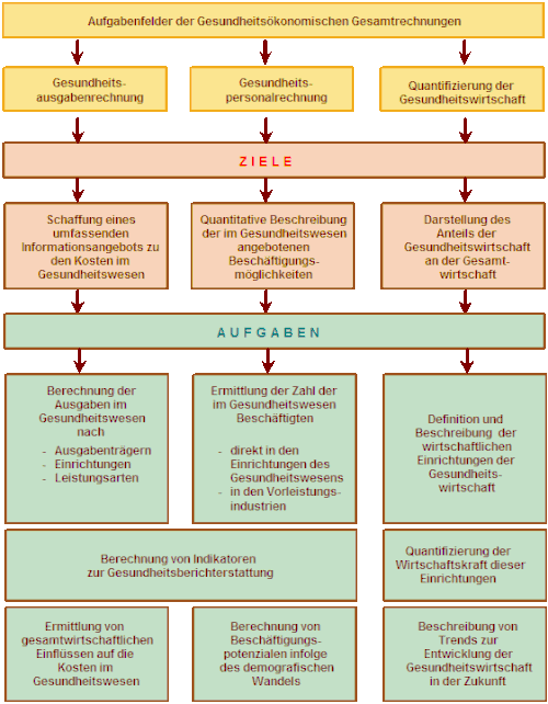 Erste wesentliche Schritte zur Ausgestaltung von Gesundheitsökonomischen Gesamtrechnungen stellen zum einen der Aufbau der Gesundheitsausgabenrechnung und der Gesundheitspersonalrechnung sowie zum anderen die Entwicklung eines Wertschöpfungsansatzes für die Gesundheitswirtschaft dar. Die Gesundheitsökonomischen Gesamtrechnungen geben also Auskunft über die getätigten Ausgaben im Gesundheitswesen, die Erwerbstätigen in diesem Wirtschaftsbereich sowie über die Leistungsfähigkeit und wirtschaftliche Bedeutung der Gesundheitswirtschaft. Um die Komplexität der Gesundheitswirtschaft adäquat berücksichtigen zu können, werden die Gesundheitsökonomischen Gesamtrechnungen der Länder als Satellitensystem zu den Volkswirtschaftlichen Gesamtrechnungen (VGR) entwickelt. Perspektivisch wird mit Hilfe von Erkenntnissen aus diesem Satellitensystem auch eine Qualitätsverbesserung einzelner Komponenten der Volkswirtschaftlichen Gesamtrechnungen angestrebt.