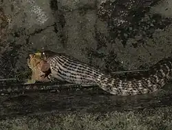 - ↑ a b c M. L. Hossain: Food habits of checkered keelback, Xenochrophis piscator (Schneider, 1799), in Bangladesh. In: Bangladesh Journal of Zoology. Band 44, Nr. 1, November 2016, S. 153, doi:10.3329/bjz.v44i1.30185 (englisch).