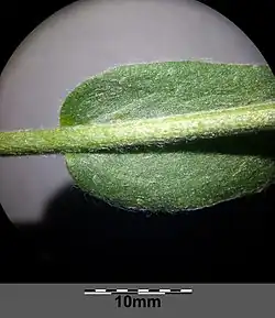 Die Laubblätter sind in grundständigen Rosetten und dicht wechselständig am Stängel verteilt angeordnet. Die Stängelblätter sind bis zu 20 Zentimeter lang,[2] stängelumfassend, beiderseits angedrückt behaart, grau-grün und derb,[1] Die untersten Stängelblätter besitzen einen geflügelten Blattstiel, die oberen sind sitzend, bei einer Länge von 5 bis 15 Zentimetern sowie einer Breite von 7,5 bis 30 Millimetern[2] lanzettlich und filzig behaart.[4]