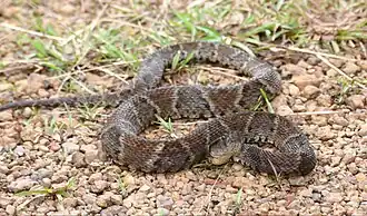 Bei Störung setzt sie sich durch Giftbisse zur Wehr.[3] Der Vorderkörper wird dabei lanzenartig nach vorn geworfen, so dass die Reichweite der Schlange im Falle eines Bisses groß ist. Die Fortpflanzung erfolgt durch Ovoviviparie, also ei-lebendgebärend. Ein Wurf kann zwischen 10 und über 20 Jungschlangen umfassen. Diese messen bei der Geburt circa 25 cm und ernähren sich von kleinen Wirbeltieren.
