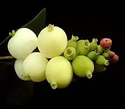 Die Gewöhnliche Schneebeere (Symphoricarpos albus) ist ein in Nordamerika heimischer Strauch, der in Europa als Ziergehölz weit verbreitet ist. Die weißen Früchte verbleiben bis in den Winter hinein an den Sträuchern. Wegen des Geräuschs, das die Früchte beim Zerdrücken erzeugen, werden sie auch Knallerbsen genannt.