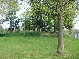 1954 und 1973 wurden beim Bau der Straße und des Sportplatzes Teile der Anlage abgetragen.