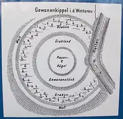 Als „Gewanneküppel“ wird eine Motte in ungefähr runder Erdaufschüttung und heute etwa 40 Meter Durchmesser an der Schwalheimer Wetterschleife bezeichnet. Archäologisch wird sie als typische Form einer vermutlich ottonischen Wohnburg aus Holz interpretiert. Die heute nur noch flache Aufschüttung soll früher etwa vier Meter hoch gewesen sein. Da das Erdreich nach dem Verfall der Anlage immer mehr abgeschwemmt wurde, hatten die Bewohner des Ortes die Anlage mit Rasen- bzw. Pflanzstücken verfestigt, im Volksmund „Gewanne“ genannt, die zum heutigen Namen führten.
