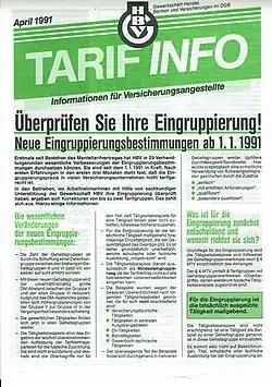 HBV-Gehaltstabelle und Tätigkeitsbeispiele in der Versicherungsbranche ab 1. Oktober 1990 -