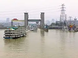 Gezhouba-Talsperre, Schiffe auf Talfahrt