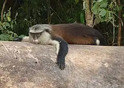 Es gibt viele verschiedene Affenarten. In den Regenwäldern im Südwesten leben Schimpansen, so im Ankasa-Schutzgebiet. In Ankasa und in Bia kommt auch die ebenfalls seltene Roloway-Meerkatze vor, diese lebt auch auf dem Monkey hill in Takoradi. Grüne Meerkatzen sind wesentlich häufiger und in vielen Schutzgebieten zu finden. Monameerkatzen sind die am leichtesten zu beobachtenden Waldarten und leben u. a. in den Reservaten von Tafi-Atome und Buabeng-Fiema. In Buabeng-Fiema sind auch Geoffroy-Stummelaffen regelmäßig zu sehen. Paviane werden insbesondere im Mole-Nationalpark und in den Shai Hills angetroffen.[7]
