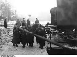Weitere geplante Züge wurden wegen eklatanter Nachschubprobleme der Wehrmacht in der Schlacht um Moskau abgebrochen und ins so genannte Ghetto Riga bzw. in das Lager Jungfernhof umgeleitet.[21][22] Etwa 1.400 der nach Minsk deportierten Juden wurden für Zwangsarbeiten in Reparaturwerkstätten, Versorgungslagern der Wehrmacht, der NS-Bauorganisation Todt und der Reichsbahn zugewiesen.