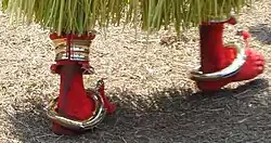 Die Metallringe, genannt Tamil silambu (silampu, cilampu) in Tamil Nadu, in Kerala chilambu und Tulu gaggara in der Region Tulu Nadu im Südwesten von Karnataka, werden für regionale Tänze und Ritualtheater verwendet, darunter für Teyyam in Kerala[33] und Bhuta kola in Tulu Nadu. Die schweren aus Bronze gegossenen[34] oder aus leichterem Silberblech gefertigten silambu werden in Tamil auch kalchilambu („an den Beinen getragene silambu“) genannt.