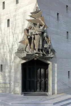 - Monumentale Bronzeplastik „Christus als Fischer“ mit flankierenden Aposteln über dem Haupteingang der Pfarrkirche Zum Guten Hirten in Wien-Hietzing (1992). Weiters schuf er für diese Kirche 42 Bronzefiguren für einen expressiven, plastischen Kreuzweg (1966–1971) und die Bronzeplastik Madonna mit Kind (1965).[4]