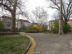 Auf dem Gelände befand sich bis 1889 der Standort der Windmühle von Kleinzschocher. Im Zuge der 1898 einsetzenden planmäßigen Bebauung des Gebiets mit Arbeiterwohnhäusern in offener Blockrandbauweise wurde auf dieser Fläche eine Grünanlage angelegt, die als Mittelpunkt des Viertels fungieren sollte.