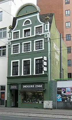 Das Haus ist durch die Nutzung als Drogerie und Chemikaliengroßhandel (1902–2012) überregional bekannt geworden.[3] Im Erdgeschoss führte der Gründer Hermann Zinke zeitweise auch eine Apotheke. Im ersten Stock befand sich ein Kosmetiksalon, die oberen Stockwerke wurden als Wohnraum genutzt. Die Drogerie wurde ab Anfang 2013 von einem anderen Geschäftsinhaber in einem Ladengeschäft auf der gegenüberliegenden Straßenseite weitergeführt und das Gebäude verkauft. Der ursprüngliche Standort der Firma wurde nach Bremerhaven verlegt.[4][5]
