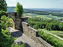 Bei guten Wetter kann eine gute Aussicht über die Region Bamberg bis nach Thüringen genossen werden, wobei auf einer Tafel auf der Burg folgende Aussichtspunkte von West nach Ost genannt sind: