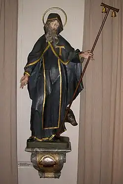 An der linken Wand hängt ein großes Kruzifix, vor 1420 datiert, das ursprünglich im Chorbogen der Pfarrkirche St. Gallus hing, und steht eine Anna-Selbdritt-Gruppe, um 1500.[11] An der rechten Wand steht eine Pietà, Kopie der Matthias Fallerschen Pietà aus der Pfarrkirche St. Jakobus (Stegen-Eschbach).