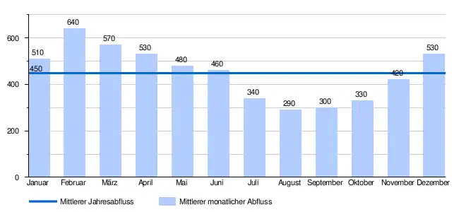 - ↑ a b Mittlere Abflüsse (m³/s) und Abflussregimetyp für das Gewässernetz der Schweiz (Bundesamt für Umwelt BAFU)