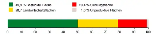 Das Einzugsgebiet besteht zu 49,9 % aus bestockter Fläche, zu 28,7 % aus Landwirtschaftsfläche, zu 20,4 % aus Siedlungsfläche und zu 1,0 % aus unproduktiven Flächen.