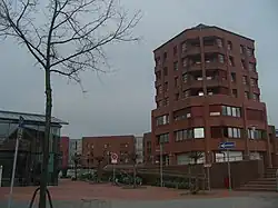 - Die ehemalige Oxford-Kaserne an der Roxeler Straße wird hufeisenförmig von der Wohnbebauung des Stadtteils umgeben. Die 1934–1936 als Hermann-Göring-Kaserne erbaute Kaserne wurde bis zum Frühjahr 2014 von der Britischen Rheinarmee genutzt.[9] Über die anschließende Nutzung des 27 ha großen und zum Teil mit denkmalgeschützter Bebauung versehenen Geländes wurde lange diskutiert. Geplant ist, beide Kasernengelände (Oxford- und York-Kaserne) für den Wohnungsbau zur Verfügung zu stellen.[10]