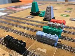 Als Nächstes nimmt der Startspieler die oberste Aktionskarte mit roter Rückseite vom Nachziehstapel und deckt diese auf. Er zieht die schwarze Lokomotive entsprechend der Angabe auf der Karte vorwärts und zieht entsprechend der Spieleranzahl drei oder vier zusätzliche Aktionskarten von dem Stapel mit der beigen Rückseite. Danach wählt er eine Karte als seine Aktionskarte aus und danach wählen die anderen Spieler in Spielerreihenfolge ebenfalls eine Karte.[1]