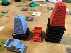 - 20 Bohrtürmen (jeweils 5 pro Spielerfarbe),