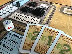 - einem Spielfeld mit dem Gelände der Ölfelder, den drei Ölbörsen und den Eisenbahnlinien,