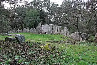 Die etwa halbrunde 18,4 m breite Exedra wird aus Orthostaten gebildet, die in der Höhe zu den Seiten hin abnehmen. Im Zentrum befindet sich das Unterteil der Portalstele in situ während das (hier entweder separate aufgesetzte oder nie existente) Oberteil fehlt. Die ungewöhnlich breite, 2,1 m hohe Portalplatte zeigt das übliche Rahmenrelief und unten in der Mitte, den Zugang. Die Kammer ist rechteckig (Länge 12,5 m, Breite 0,9 m an der Basis, Höhe 0,9 m). Die rechteckige Apsis und die seitlichen Wände kragen leicht über und bestehen aus in Reihen angeordneten unregelmäßigen Granitblöcken. Die Decke besteht aus Stürzen, von denen 12 Platten erhalten sind.