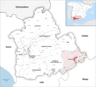 Sie befindet sich innerhalb der Sierra Sud. Sie grenzt an die Gemeinden Aguadulce, Estepa, Osuna und Pedrera.