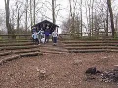 Mehrere Blockhütten am Rand der Woodland Fields beherbergen jeweils acht Personen. Gekocht werden kann in einem separaten Gebäude oder über offenem Feuer. Die Storm Hut ist ein großes, hallenähnliches Gebäude für Aktivitäten und Spiele. Es wurde per LKW aus Wales in den Park transportiert.