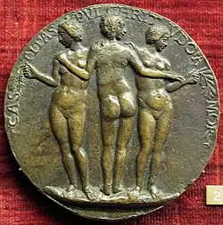 - Niccolò Fiorentino zugeschrieben: Porträtmedaille mit zwei unterschiedlichen Revers-Darstellungen, um 1486. Zu Ehren von Giovanna Tornabuoni wurden nachweislich zwei Medaillen mit gleichem Avers-Porträtmotiv (Vorderseite), aber alternierender Revers-Darstellung (Rückseite) geprägt: Die Vorderseite beider Medaillen ziert ein Porträt von Giovanna, die Rückseite der ersten Medaille zeigt drei Grazien, das Revers der zweiten Medaille eine Darstellung der gerüsteten Venus. Der Entwurf für beide Porträtmedaillen wird Niccolò Fiorentino zugeschrieben. Auf der gleichbleibenden Vorderseite weist die umlaufende Inschrift UXOR LAVRENTII DE TORNABUONIS IOANNA ALBIZA die Dargestellte als Ehefrau von Lorenzo Tornabuoni aus und macht einen Herstellungskontext im Zeitraum und im Zusammenhang mit ihrer Hochzeit 1486 wahrscheinlich. Exemplare der Medaillen sind in verschiedenen Museen bewahrt: Die Medaille mit den drei Grazien auf dem Revers ist im British Museum London, (Bronze, 7,8 cm, Inventarnummer G3,IP.3) und im Fitzwilliam-Museum Cambridge (Bronze, 7,3 cm, Inventarnummer CM.131–1978). Ein Exemplar mit der gerüsteten Venus bewahrt das Los Angeles County Museum of Art (Bronze, 7,4 cm, Inventarnummer 79.4.362).