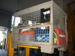 In der Praxis sind Blocklager mit bis zu sieben gestapelten Gitterboxen üblich (maximal 800 Kilogramm pro Gitterbox bei 7 Lagen). Die vorhandenen zwei Vorderwandklappen sind drehbar um eine waagerechte Achse gelagert. Die Klappen dienen der besseren Entnahme der geladenen Ware.