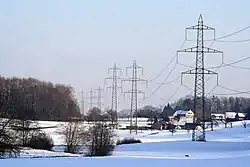 Gittermasten werden auch als Antennenmast eingesetzt, häufig auch auf einem Gittermast mit einer Hochspannungsleitung.