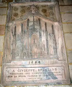 - Giuseppe Brentano: PER LA NUOVA FACCIATA del DUOMO di MILANO Ricordi, Milano 1888 Loseblattausgabe, 62 Seiten mit zahlreichen Abbildungen (Beitrag zur zweiten Stufe des Winternationalen Architektenwettbewerbs von 1886–88)