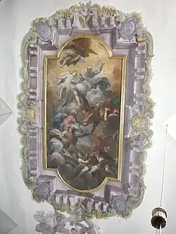 - Vergine incoronata dalla Trinità con angeli recanti gli strumenti della Passione (Fresko)