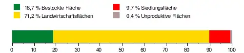 Es besteht zu 18,7 % aus bestockter Fläche, zu 71,2 % aus Landwirtschaftsfläche, zu 9,7 % aus Siedlungsfläche und zu 0,4 % aus unproduktiven Flächen.