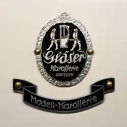 Die Marke Gläser Karosserie Dresden geht auf den Königlichen Hofwagenbauer Carl Heinrich Gläser in Dresden zurück, der 1863 als Sattler nach Dresden kam. Als Innungsmitglied der Sattler[3] übernahm er 1864 die Werkstatt des verstorbenen Sattlermeisters C. F. Kästner in Dresden auf der Rampischenstraße 24 (später Nr. 6). Gläser firmierte als Heinrich Gläser, Sattlerei und Wagenbau und stellte hochwertige Luxuskarossen und höfische Pferdekutschen her. Aufgrund der Qualität seiner Karossen für Kutschen, Chaisen, Sänften und Pferdeschlitten wurde er 1871 Königlicher Hofwagenlieferant; 1874 erhielt er den Titel Königlicher Hofwagenbauer. Ab dieser Zeit versah er seine Exponate mit seiner Wortbildmarke „Gläser Karosserie Dresden“ in Form einer ovalen Plakette mit dem Bild einer königlichen Sänfte. Sein Betrieb arbeitete als Manufaktur mit 23 Beschäftigten und lieferte jährlich etwa 20 Kutschen in luxuriöser Ausführung an den Königlich-Sächsischen Hof.