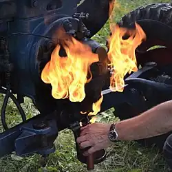 Bevor ein kalter Glühkopfmotor gestartet werden kann, muss der Glühkopf durch Fremdheizung (Lötlampe) vorgewärmt werden.[19][20]