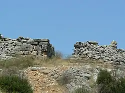 Bei Ausgrabungen kamen eine Befestigungsmauer sowie Gebäudereste aus mykenischer Zeit zu Tage. Ein Palast, vergleichbar z. B. mit Tiryns, Mykene oder Pylos wurde jedoch nicht gefunden. Das umschlossene Areal ist mit ungefähr 26 ha etwa zehn Mal so groß wie die mykenischen Oberstädte von Athen oder Tiryns.