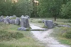 - ↑ Claudia Liebers: Neolithische Megalithgräber in Volksglauben und Volksleben. Untersuchung historischer Quellen zur Volksüberlieferung, zum Denkmalschutz und zur Fremdenverkehrswerbung, Peter Lang, 1986, S. 50.