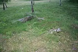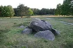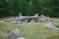 - Von der Glaner Braut IV sind nur noch die Reste der Grabkammer zu sehen. Ein Deckstein liegt etwa 14 m entfernt.