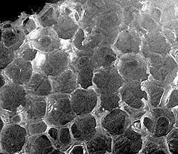 Glaskohlenstoff, auch glasartiger Kohlenstoff genannt, ist ein synthetischer Werkstoff aus reinem Kohlenstoff, der glasartige keramische Eigenschaften mit denen des Graphits vereint. Glaskohlenstoff ist ein strukturell amorphes Allotrop des Kohlenstoffs, das durch die Präsenz planarer, zweidimensionaler Strukturelemente gekennzeichnet ist. Weiterhin sind in Glaskohlenstoff fast alle Kohlenstoff-Atome sp2-hybridisiert. Aufgrund dieser Strukturmerkmale und der weitgehenden Abwesenheit von nicht abgesättigten Bindungen ist Glaskohlenstoff nicht identisch mit amorphem Kohlenstoff.[1][2] Die International Union of Pure and Applied Chemistry empfiehlt die Verwendung der Bezeichnung glass-like carbon ("glasartiger Kohlenstoff").[1]