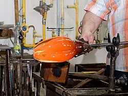 Glasmacher entnehmen dem Hafen- oder dem Wannenofen mittels einer Glasmacherpfeife oder eines Glasmachereisens, eines langen Rohres oder Stahlstabes, Glasklumpen. Diese werden durch Drehen, Blasen und gezielte Kühlung mittels Holz-, Metall oder Papierwerkzeugen zu den gewünschten Halbzeugen oder Fertigprodukten verarbeitet. Der Glasmacher unterscheidet normalerweise zwischen verschiedenen Werkzeugen aus Metall oder Holz, inzwischen auch Graphit. Metallwerkzeuge sind zum Beispiel die Rundschere, Batzenschere oder einfache Schere, die durch unterschiedliche Form und Handhabung für die Produktion eingesetzt werden. Holzwerkzeuge können sogenannte Bretter, Wulgerhölzer sowie beispielsweise Rinnen und natürlich Formen zum Einblasen sein. Hierbei wird aufgrund der spezifischen Anforderungen an das Holz vorzugsweise Birne verwendet. Als Vorbereitung wird die Kontaktoberfläche mit einem Gasbrenner oder heißem Glas verkohlt und dann genauso wie zwischen den Anwendungen in Wasser getränkt. Die durch das Verkohlen entstandene Holzkohleschicht saugt sich dabei mit Wasser voll. Gelangt nun das heiße Werkstück in Kontakt mit der Form, verdampft das Wasser. Das flüssige Glas gleitet dann bei den Drehbewegungen der Bearbeitung auf der Oberfläche des Dampfes, wodurch eine absolut glatte Oberfläche erzeugt wird.