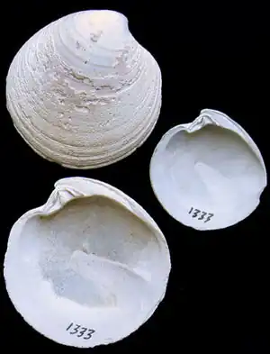 Das gleichklappige, rundlich-elliptische Gehäuse misst im Durchmesser etwa 3,8 cm. Die vertikale Achse ist geringfügig größer als die horizontale Achse. Es ist relativ flach, d. h. die beiden Klappen sind mäßig nach außen gewölbt (gebläht). Es ist leicht ungleichseitig, die Wirbel sitzen etwas vor der Mittellinie (bezogen auf die Gehäuselänge). Die Wirbel sind nach vorne gebogen (prosogyr). Die Lunula ist deutlich abgesetzt mit radialen Rücken, aber recht kurz. Das Schloss besitzt in beiden Klappen je drei Kardinalzähne. In der linken Klappe zusätzlich noch ein kleiner Lateralzahn vor dem ersten Kardinalzahn vorhanden. Das tief eingesenkte Ligament erstreckt sich über ca. die Hälfte der Länge des hinteren Dorsalrandes. Der innere Gehäuserand ist glatt. Die Mantellinie zeigt eine tiefe und schmale Bucht. Die Siphonen sind ziemlich lang und miteinander verwachsen.