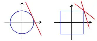 Glattheit hängt von der Norm ab und kann beim Übergang zu einer äquivalenten Norm verloren gehen. Das zeigt sich schon am Beispiel des zweidimensionalen Raums . Versieht man den zweidimensionalen Raum mit der euklidischen Norm , so ist die Einheitssphäre ein Kreis und jeder Punkt hat genau eine Stützhyperebene, nämlich die Tangente an diesem Punkt, das heißt ist glatt. Betrachtet man auf dem die Maximumsnorm , so ist die „Einheitskugel“ ein Quadrat. An jeder Ecke des Quadrates gibt es unendlich viele Stützhyperebenen, alle anderen Punkte sind Glattheitspunkte. Damit ein Raum glatt ist, muss aber jeder Punkt der Einheitssphäre ein Glattheitspunkt sein, das heißt ist nicht glatt. Da die euklidische Norm und die Maximumsnorm auf dem äquivalent sind, sieht man an diesem Beispiel, dass die Glattheit beim Übergang zu einer äquivalenten Norm verloren gehen kann.