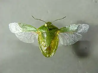 - ↑ a b c d e f g h i N. A. Martin: Australasian green shield bug - Glaucias amyoti. landcareresearch.co.nz, abgerufen am 23. Januar 2017.