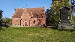 Das Kirchengebäude wurde 1899 gründlich renoviert. Im Innern hatte es eine trapezförmige Holzdecke. Zur Ausstattung gehörten ein Altar von 1860 und eine Orgel von 1850. Die Glocken wurden 1774 gegossen. Eine davon musste im Ersten Weltkrieg zum Einschmelzen abgeliefert werden. Nach dem Krieg wurde sie durch eine Stahlglocke ersetzt. Drei Weihwassersteine aus Granit stammten aus dem 15. Jahrhundert. Nachdem 1982 ein Sturm die Kirche schwer beschädigt hatte, verfiel sie rasch. Das Dach fiel ein. 1989 veranlasste Pfarrer Jan Reichelt aus Kraplau, dass die 1923 installierte Glocke mit der Inschrift NACH DEM KRIEGSLEID IN SCHWERER ZEIT DEM HERRN GEWEIHT geborgen wurde. Die deutsche Minderheit in Ostróda und die Kreisgemeinschaft Osterode mit Sitz in Osterode am Harz sammelten genug Geld für den Wiederaufbau.[5]