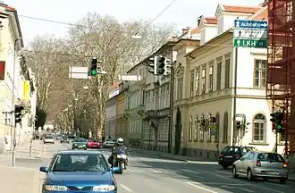 Die Strata hungarica (Ungarische Straße) führte von Graz nach Ungarn. Sie diente vor allem dem Gütertransport. Seit dem 1. April 1839 fuhr zweimal wöchentlich eine Postkutsche zwischen Graz und Fürstenfeld.[1] Im Jahr 1847 gab es im steirischen Streckenabschnitt Mautstationen in Gleisdorf, in Ilz, an der Feistritzbrücke und in Fürstenfeld, die der Staatskasse rund 5500 Gulden einbrachten.[2] Am 20. März 1855 genehmigte Kaiser Franz Joseph den Neubau einer weniger steilen Straße von der Bergkette des Oststeirischen Hügellandes hinab zur Rabnitzbrücke, die 95.000 Gulden kosten sollte.[3]