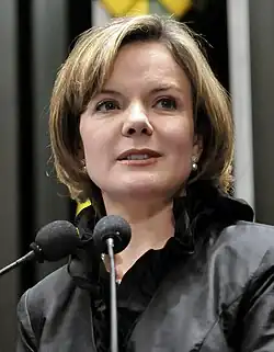 Gleisi Helena Hoffmann (* 6. September 1965 in Curitiba, Paraná) ist eine brasilianische Rechtsanwältin und Politikerin. Seit dem 3. Juni 2017 ist sie die Vorsitzende der Arbeiterpartei (PT) und trat damit die Nachfolge von Rui Falcão an.[1] Seit dem 10. März 2025 ist sie Sekretärin für Institutionelle Beziehungen im Kabinett Lula da Silva III.