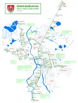 Bereits am 1. August 1914 musste die Gleislose Bahn kriegsbedingt wieder eingestellt werden. Zwischen dem 28. Oktober 1948 und dem 24. September 1971 existierte in České Budějovice dann der erste moderne Oberleitungsbusbetrieb, das heutige Netz wiederum ging am 1. Mai 1991 in Betrieb.