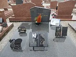 Sechs Jahre später, am 18. Juni 1996, kurz vor seinem 65. Geburtstag, starb er an Krebs.[11] Er wurde in der Familiengruft auf dem Friedhof von Maël-Carhaix beigesetzt, wo mehr als 4000 Menschen an seiner Beerdigung teilnahmen. Auf dem Grabstein steht geschrieben: