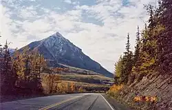 | Glenn Highway etwa 30 Kilometer vor Glenallen mit Mount Drum im Hintergrund | ||||||||||||||||||||||||||||