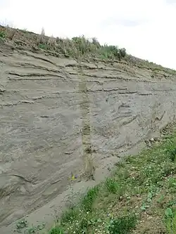 Sand- und Kieslagen wie die der Glimmersandgrube in Helsighausen stammen üblicherweise von einem Fliessgewässer. Dies lässt sich auch an den schräg abgeschnittenen Schichten an den Abbauwänden der Sandgrube erkennen. Der Aufbau der Sedimente deutet somit auf eine weite Flussebene mit Mäander hin. Aus Nordbayern und aus den Hohen Tauern südlich von Salzburg kam ein breiter Strom, welcher längs des Alpenvorlandes von Osten nach Westen floss und ins Mittelmeer mündete. Dieser lagerte den glimmerhaltigen Sand vor 16 bis 12 Mio. Jahren auf seinem Grund ab. Daraus entstand schlussendlich der helle, kalkreiche Knauersandstein, der auch Glimmersand genannt wird und zu den jüngsten Molasseschichten der Ostschweiz gezählt wird.[1][2][3][4]