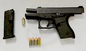 Die Glock 42 ist eine halbautomatische Pistole im Kaliber .380 ACP der Firma Glock. Das Magazin der ungeladen nur 390 Gramm schweren Waffe fasst 6 Patronen. Durch die überaus kompakten Abmessungen eignet sie sich besonders gut zum verdeckten Tragen.[1]